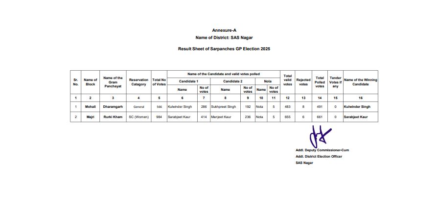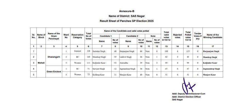 ਮੋਹਾਲੀ ਜ਼ਿਲ੍ਹੇ ਦੇ ਨਵੇਂ ਚੁਣੇ ਗਏ ਸਰਪੰਚਾਂ ਅਤੇ ਪੰਚਾਂ ਦੀ ਸੂਚੀ ਜਾਰੀ ਟ੍ਰਾਈਸਿਟੀ ਜੁਲਾਈ 28, 2025ਜੁਲਾਈ 28, 2025Leave a Comment on ਮੋਹਾਲੀ ਜ਼ਿਲ੍ਹੇ ਦੇ ਨਵੇਂ ਚੁਣੇ ਗਏ ਸਰਪੰਚਾਂ ਅਤੇ ਪੰਚਾਂ ਦੀ ਸੂਚੀ ਜਾਰੀ ਮੋਹਾਲੀ: 28 ਜੁਲਾਈ, ਦੇਸ਼ ਕਲਿੱਕ ਬਿਓਰੋਮੋਹਾਲੀ ਜ਼ਿਲ੍ਹੇ ਵਿੱਚ ਕੱਲ੍ ਕੁਝ ਪਿੰਡਾਂ ਵਿੱਚ ਸਰਪੰਚ ਅਤੇ ਪੰਚ ਦੀ ਚੋਣ ਲਈ ਵੋਟਾਂ ਪਈਆਂ। ਜਿਨ਼ਾਂ ਪਿੰਡਾਂ ਵਿਚ ਚੋਣ ਹੋਈ ਉਸਦੀ ਸੂਚੀ ਜਾਰੀ ਕੀਤੀ ਗਈ ਹੈ।