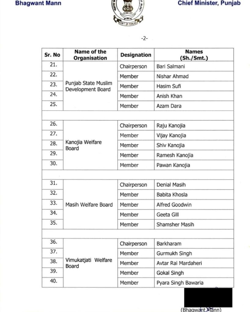 ਮੁੱਖ ਮੰਤਰੀ ਭਗਵੰਤ ਮਾਨ ਵੱਲੋਂ ਵੱਖ ਵੱਖ ਬੋਰਡਾਂ, ਕਾਰਪੋਰੇਸ਼ਨਾਂ ਦੇ ਚੇਅਰਪਰਸਨਾਂ ਤੇ ਮੈਂਬਰਾਂ ਦਾ ਐਲਾਨ