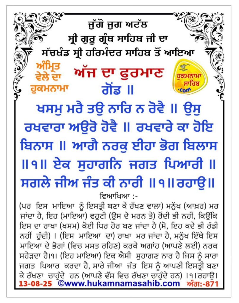 Wednesday, 29th Saawan (Samvat 557 Nanakshahi)