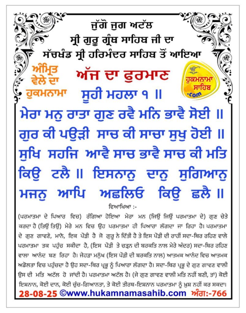 ਸੱਚਖੰਡ ਸ੍ਰੀ ਹਰਿਮੰਦਰ ਸਾਹਿਬ, ਸ੍ਰੀ ਅੰਮ੍ਰਿਤਸਰ, 28-08-2025