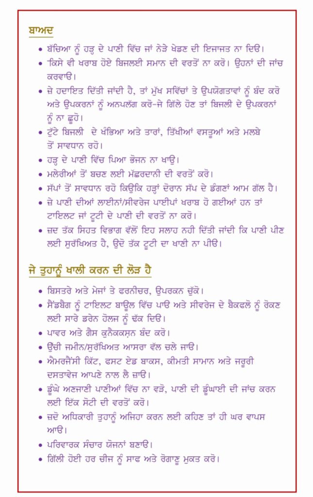 ਪਿਛਲੇ ਕਈ ਦਿਨ ਲਗਾਤਾਰ ਮੀਂਹ ਪੈਣ ਤੋਂ ਬਾਅਦ ਆਏ ਹੜ੍ਹਾਂ ਨੇ ਸੂਬੇ ਦੇ ਕਈ ਜ਼ਿਲ੍ਹਿਆਂ ਵਿੱਚ ਤਬਾਹੀ ਮਚਾਈ ਹੋਈ ਹੈ। ਹੜ੍ਹਾਂ ਵਿਚ ਫਸੇ ਲੋਕਾਂ ਨੂੰ ਕੱਢਣ ਲਈ ਐਨਡੀਆਰਐਫ, ਫੌਜ ਅਤੇ ਹੋਰ ਸੰਸਥਾਵਾਂ ਵੱਲੋਂ ਕੰਮ ਕੀਤਾ ਜਾ ਰਿਹਾ ਹੈ। ਅਜਿਹੀ ਸਥਿਤੀ ਵਿੱਚ ਜ਼ਿਲ੍ਹਾ ਫਿਰੋਜ਼ਪੁਰ ਪ੍ਰਸ਼ਾਸਨ ਵੱਲੋਂ ਐਡਵਾਇਜ਼ਰੀ ਜਾਰੀ ਕੀਤੀ ਗਈ ਹੈ ਕਿ ਹੜ੍ਹ ਲਈ ਕੀ ਕਰੋ ਅਤੇ ਨਾ ਕਰੋ।