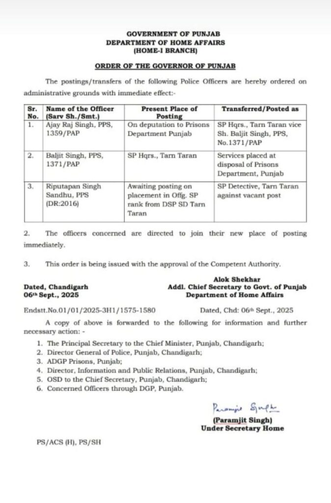 ਪੰਜਾਬ ਸਰਕਾਰ ਵੱਲੋਂ PPS ਅਧਿਕਾਰੀਆਂ ਦੀਆਂ ਬਦਲੀਆਂ ਪੰਜਾਬ ਸਤੰਬਰ 7, 2025ਸਤੰਬਰ 7, 2025Leave a Comment on ਪੰਜਾਬ ਸਰਕਾਰ ਵੱਲੋਂ PPS ਅਧਿਕਾਰੀਆਂ ਦੀਆਂ ਬਦਲੀਆਂ ਚੰਡੀਗੜ੍ਹ, 7 ਸਤੰਬਰ, ਦੇਸ਼ ਕਲਿੱਕ ਬਿਓਰੋ : ਪੰਜਾਬ ਸਰਕਾਰ ਵੱਲੋਂ PPS ਅਧਿਕਾਰੀਆਂ ਦੀਆਂ ਬਦਲੀਆਂ ਕੀਤੀਆਂ ਗਈਆਂ ਹਨ।