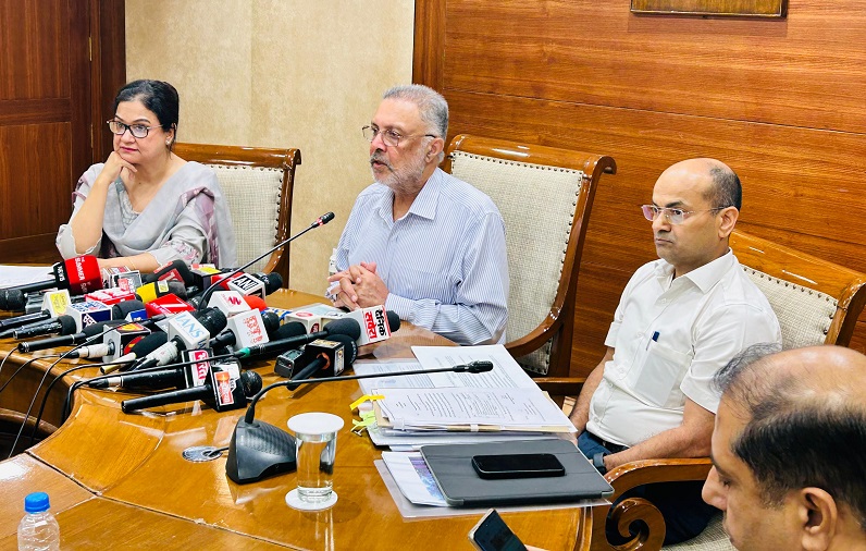 ਪੰਜਾਬ ਭਵਨ ਵਿਖੇ ਮੀਡੀਆ ਨੂੰ ਸੰਬੋਧਨ ਕਰਦੇ ਹੋਏ, ਡਾ. ਬਲਬੀਰ ਸਿੰਘ ਨੇ ਕਿਹਾ ਕਿ ਹੜ੍ਹਾਂ ਨੇ ਰਾਜ ਦੀ ਜਨਤਕ ਸਿਹਤ ਪ੍ਰਣਾਲੀ ਨੂੰ ਵੱਡੀ ਢਾਅ ਲਾਈ ਹੈ , ਜਿਸ ਨਾਲ ਰਾਜ ਭਰ ਵਿੱਚ ਸਿਹਤ ਸਹੂਲਤਾਂ ਨੂੰ ਭਾਰੀ ਨੁਕਸਾਨ ਪਹੁੰਚਿਆ ਹੈ। ਮੰਤਰੀ ਦੇ ਨਾਲ ਪ੍ਰਮੁੱਖ ਸਕੱਤਰ ਸਿਹਤ ਕੁਮਾਰ ਰਾਹੁਲ ਅਤੇ ਡਾਇਰੈਕਟਰ ਸਿਹਤ ਅਤੇ ਪਰਿਵਾਰ ਭਲਾਈ ਡਾ. ਹਿਤਿੰਦਰ ਕੌਰ ਵੀ ਮੌਜੂਦ ਸਨ।