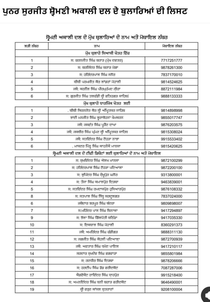 ਪੁਨਰ ਸੁਰਜੀਤ ਸ਼੍ਰੋਮਣੀ ਅਕਾਲੀ ਦਲ ਨੇ 31 ਬੁਲਾਰਿਆਂ ਦੀ ਸੂਚੀ ਕੀਤੀ ਜਾਰੀ ਪੰਜਾਬ ਸਤੰਬਰ 17, 2025ਸਤੰਬਰ 17, 2025Leave a Comment on ਪੁਨਰ ਸੁਰਜੀਤ ਸ਼੍ਰੋਮਣੀ ਅਕਾਲੀ ਦਲ ਨੇ 31 ਬੁਲਾਰਿਆਂ ਦੀ ਸੂਚੀ ਕੀਤੀ ਜਾਰੀ ਚੰਡੀਗੜ੍ਹ: 17 ਸਤੰਬਰ, ਦੇਸ਼ ਕਲਿੱਕ ਬਿਓਰੋ ਪੁਨਰ ਸੁਰਜੀਤ ਸ਼੍ਰੋਮਣੀ ਅਕਾਲੀ ਦਲ ਦੇ ਪ੍ਰਧਾਨ ਗਿਆਨੀ ਹਰਪ੍ਰੀਤ ਸਿੰਘ ਨੇ ਸਿਆਸੀ ਖੇਤਰ ਦੇ 6 ਮੁੱਖ ਬੁਲਾਰੇ ਤੇ ਧਾਰਮਿਕ ਖੇਤਰ ਦੇ 6 ਮੁੱਖ ਬੁਲਾਰੇ ਅਤੇ ਟੀ. ਵੀ. ਚੈਨਲਾਂ ਦੀਆਂ ਡਿਬੇਟਾਂ ਲਈ 19 ਬੁਲਾਰਿਆਂ ਦੀ ਲਿਸਟ ਜਾਰੀ ਕੀਤੀ ਹੈ।