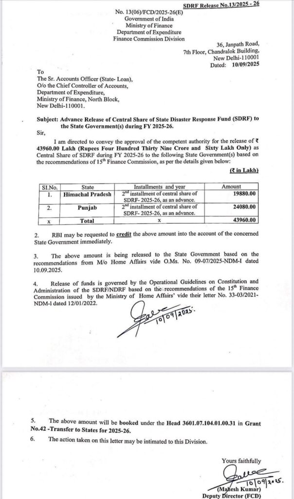 ਕੇਂਦਰ ਸਰਕਾਰ ਵੱਲੋਂ State Disaster Relief Fund ਲਈ ਹੋਰ ਵਾਧੂ 240.80 ਕਰੋੜ ਰੁਪਏ ਜਾਰੀ ਕੀਤੇ ਗਏ ਹਨ। ਇਸ ਸਬੰਧੀ ਜਾਣਕਾਰੀ ਕੇਂਦਰੀ ਮੰਤਰੀ ਰਵਨੀਤ ਸਿੰਘ ਬਿੱਟੂ ਵੱਲੋਂ ਦਿੱਤੀ ਗਈ ਹੈ। ਰਵਨੀਤ ਸਿੰਘ ਬਿੱਟੂ ਵੱਲੋਂ ਇਕ ਪੱਤਰ ਵੀ ਸੋਸ਼ਲ ਮੀਡੀਆ ਉਤੇ ਪੋਸਟ ਕੀਤਾ ਗਿਆ ਹੈ। ਰਵਨੀਤ ਸਿੰਘ ਬਿੱਟੂ ਨੇ ਲਿਖਿਆ ਹੈ, ‘ਮਾਣਯੋਗ ਪ੍ਰਧਾਨ ਮੰਤਰੀ ਸ਼੍ਰੀ ਨਰੇਂਦਰ ਮੋਦੀ ਜੀ ਦੀ ਅਗਵਾਈ ਹੇਠ ਕੇਂਦਰ ਸਰਕਾਰ ਇਕ ਵਾਰ ਫਿਰ ਪੰਜਾਬ ਦੇ ਨਾਲ ਖੜੀ ਹੈ। ਪਹਿਲਾਂ ਹੀ ₹1600 ਕਰੋੜ ਜਾਰੀ ਕਰਨ ਤੋਂ ਬਾਅਦ ਹੁਣ ਸਰਕਾਰ ਵੱਲੋਂ State Disaster Relief Fund ਲਈ ਵਾਧੂ ₹240.80 ਕਰੋੜ ਜਾਰੀ ਕੀਤੇ ਗਏ ਹਨ। ਇਹ ਮੋਦੀ ਸਰਕਾਰ ਦੀ ਅਟੱਲ ਵਚਨਬੱਧਤਾ ਹੈ ਕਿ ਪੰਜਾਬ ਅਤੇ ਪੰਜਾਬੀਆਂ ਨੂੰ ਹਰ ਮੁਸੀਬਤ ਦੀ ਘੜੀ ਵਿੱਚ ਪੂਰਾ ਸਹਿਯੋਗ ਮਿਲੇ।