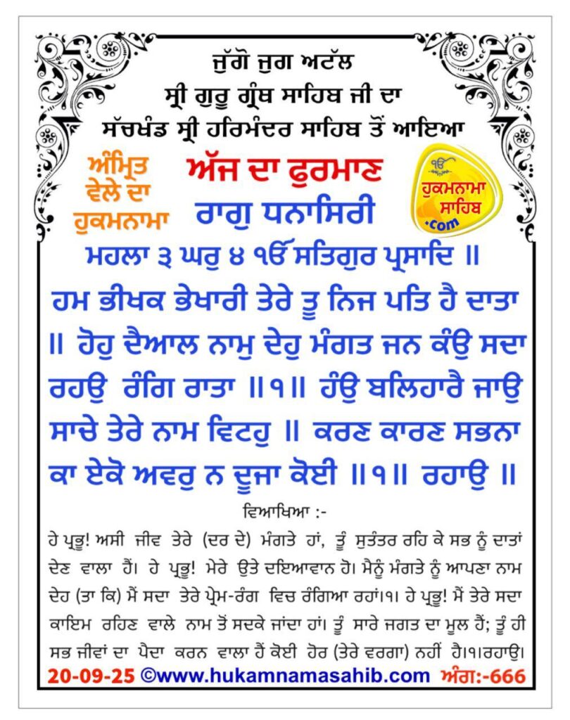 ਸੱਚਖੰਡ ਸ੍ਰੀ ਹਰਿਮੰਦਰ ਸਾਹਿਬ, ਸ੍ਰੀ ਅੰਮ੍ਰਿਤਸਰ, 20-09-2025
