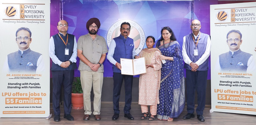 ਲਵਲੀ ਪ੍ਰੋਫੈਸ਼ਨਲ ਯੂਨੀਵਰਸਿਟੀ (LPU) ਵਿੱਚ ਬਾੜ੍ਹ ਪੀੜਤਾਂ ਦੇ ਪਰਿਵਾਰਕ ਮੈਂਬਰਾਂ ਨੂੰ ਦਿੱਤੀਆਂ ਪੱਕੀਆਂ ਨੌਕਰੀਆਂ*