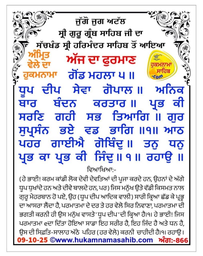 ਸੱਚਖੰਡ ਸ੍ਰੀ ਹਰਿਮੰਦਰ ਸਾਹਿਬ, ਸ੍ਰੀ ਅੰਮ੍ਰਿਤਸਰ, 09-10-2025