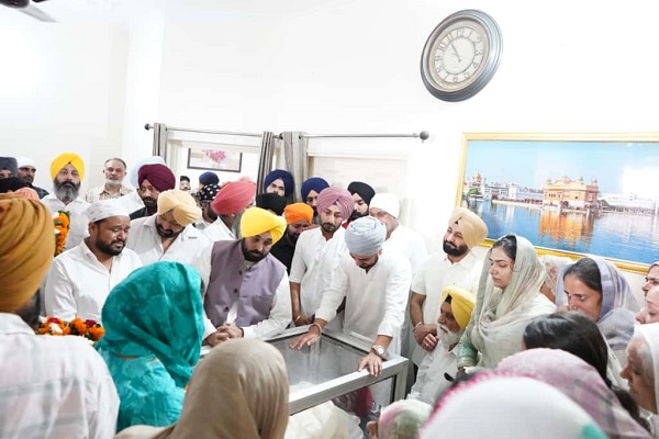 ਪੰਜਾਬ ਦੇ ਮੁੱਖ ਮੰਤਰੀ ਭਗਵੰਤ ਸਿੰਘ ਮਾਨ ਨੇ ਅੱਜ ਪ੍ਰਸਿੱਧ ਪੰਜਾਬੀ ਗਾਇਕ ਰਾਜਵੀਰ ਜਵੰਦਾ ਦੇ ਘਰ ਪੁੱਜ ਕੇ ਨੌਜਵਾਨ ਗਾਇਕ ਦੀ ਦੁਖਦਾਈ ਤੇ ਬੇਵਕਤੀ ਮੌਤ ਉੱਤੇ ਅਫ਼ਸੋਸ ਪ੍ਰਗਟਾਇਆ। ਕੁੱਝ ਦਿਨ ਪਹਿਲਾਂ ਹਾਦਸੇ ਦਾ ਸ਼ਿਕਾਰ ਹੋਏ ਰਾਜਵੀਰ ਜਵੰਦਾ ਦਾ ਕੱਲ੍ਹ ਮੋਹਾਲੀ ਦੇ ਇਕ ਪ੍ਰਾਈਵੇਟ ਹਸਪਤਾਲ ਵਿੱਚ ਦੇਹਾਂਤ ਹੋ ਗਿਆ ਸੀ।