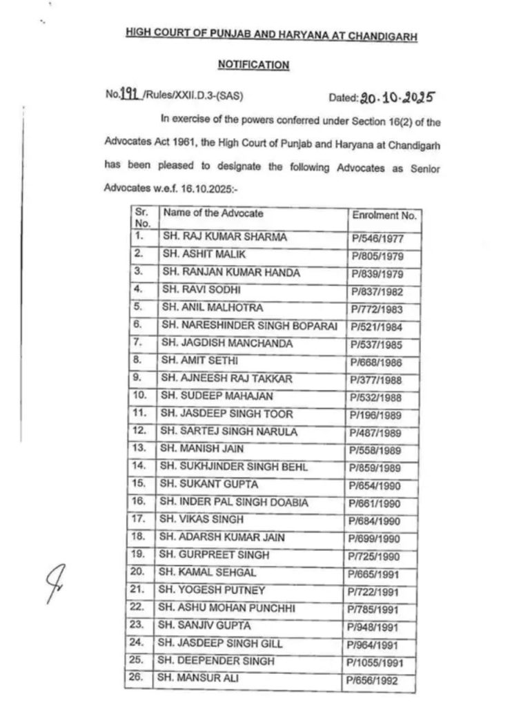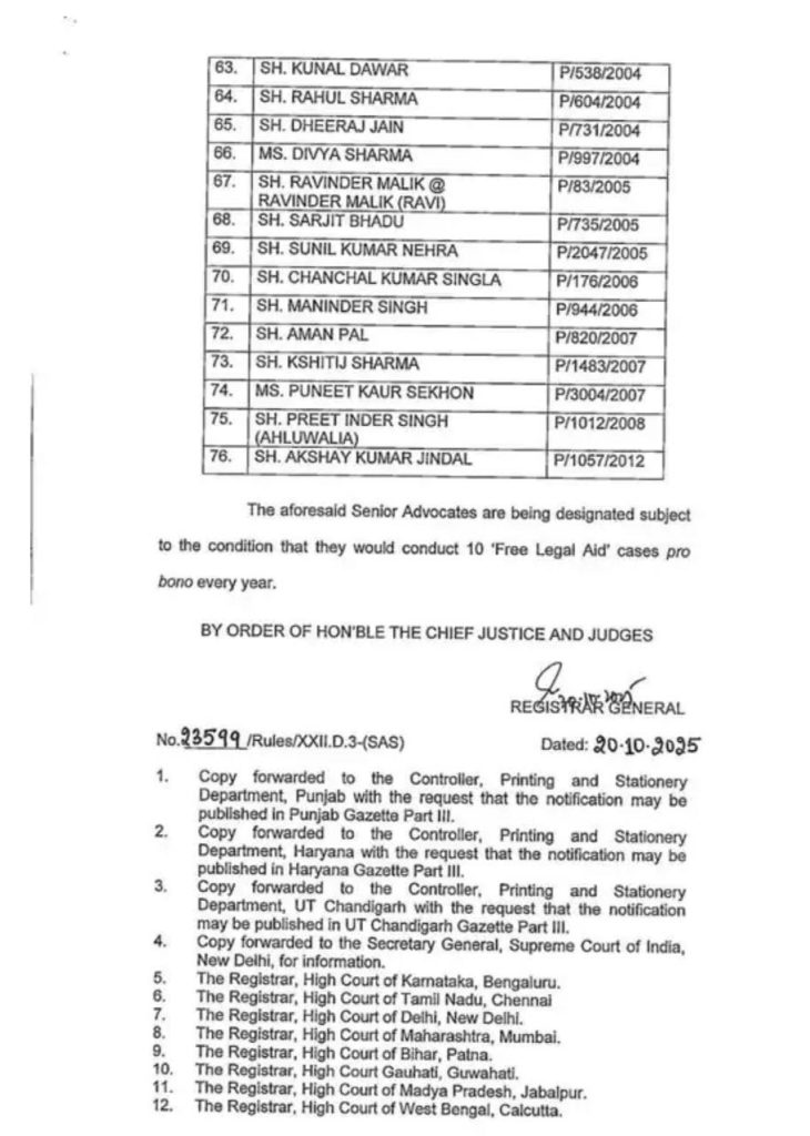 ਇਸ ਤੋਂ ਇਲਾਵਾ, ਹਾਈ ਕੋਰਟ ਨੇ 76 ਵਕੀਲਾਂ ਨੂੰ ਦੀਵਾਲੀ ਦਾ ਤੋਹਫ਼ਾ ਦਿੱਤਾ ਹੈ। ਉਨ੍ਹਾਂ ਨੂੰ ਸੀਨੀਅਰ ਵਕੀਲ ਬਣਾਇਆ ਗਿਆ ਹੈ।