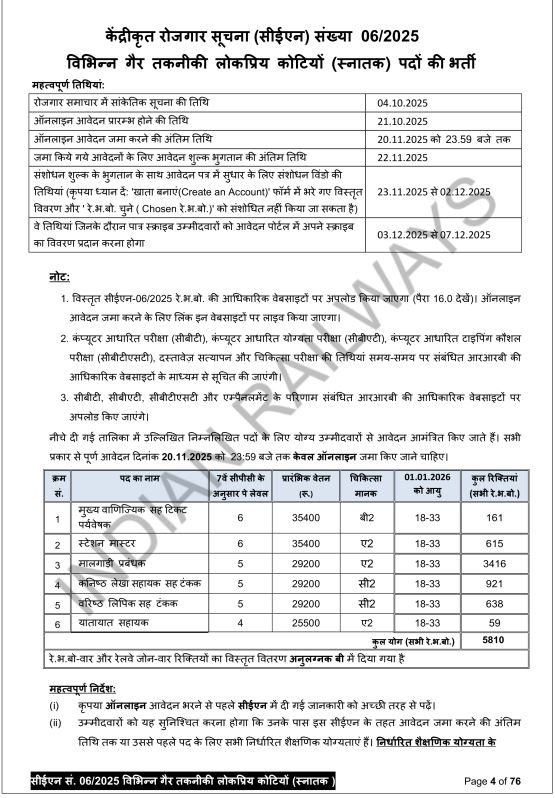 ਸਰਕਾਰੀ ਨੌਕਰੀਆਂ ਨਿਕਲਣ ਦੀ ਉਡੀਕ ਕਰ ਰਹੇ ਨੌਜਵਾਨਾਂ ਲਈ ਇਹ ਅਹਿਮ ਖਬਰ ਹੈ। ਰੇਲਵੇ ਵਿੱਚ ਵੱਡੀ ਗਿਣਤੀ ਅਸਾਮੀਆਂ ਲਈ ਅਰਜ਼ੀਆਂ ਦੀ ਮੰਗ ਕੀਤੀ ਗਈ ਹੈ। ਗ੍ਰੇਜੂਏਸ਼ਨ ਪਾਸ ਨੌਜਵਾਨਾਂ ਤੋਂ 20 ਨਵੰਬਰ 2023 ਤੱਕ ਆਨਲਾਈਨ ਅਰਜ਼ੀਆਂ ਦੀ ਮੰਗ ਕੀਤੀ ਗਈ ਹੈ।