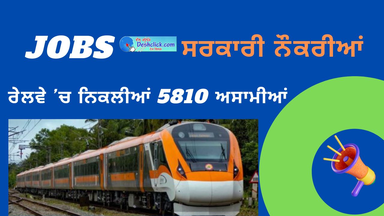 ਰੇਲਵੇ ’ਚ ਨਿਕਲੀਆਂ 5810 ਅਸਾਮੀਆਂ, ਆਨਲਾਈਨ ਅਰਜ਼ੀਆਂ ਮੰਗੀਆਂ
