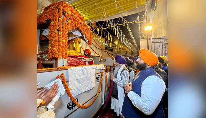 ਨਗਰ ਕੀਰਤਨ ਦੇ ਤਖ਼ਤ ਸ੍ਰੀ ਕੇਸਗੜ੍ਹ ਸਾਹਿਬ ਵਿਖੇ ਨਤਮਸਤਕ ਹੋਣ ਉਪਰੰਤ ਕੈਬਨਿਟ ਮੰਤਰੀ ਹਰਜੋਤ ਸਿੰਘ ਬੈਂਸ, ਹਰਭਜਨ ਸਿੰਘ ਈ.ਟੀ.ਉ. ਨੇ ਸ੍ਰੀ ਗੁਰੂ ਗ੍ਰੰਥ ਸਾਹਿਬ ਮਹਾਰਾਜ ਦੇ ਸਰੂਪ ਨੂੰ ਪੂਰੇ ਸਤਿਕਾਰ ਸਹਿਤ ਗੁਰੂਦੁਆਰਾ ਸ੍ਰੀ ਸੀਸ ਗੰਜ ਸਾਹਿਬ ਵਿਖੇ ਸਸ਼ੋਭਿਤ ਕੀਤਾ।