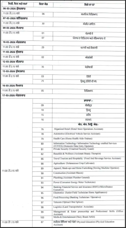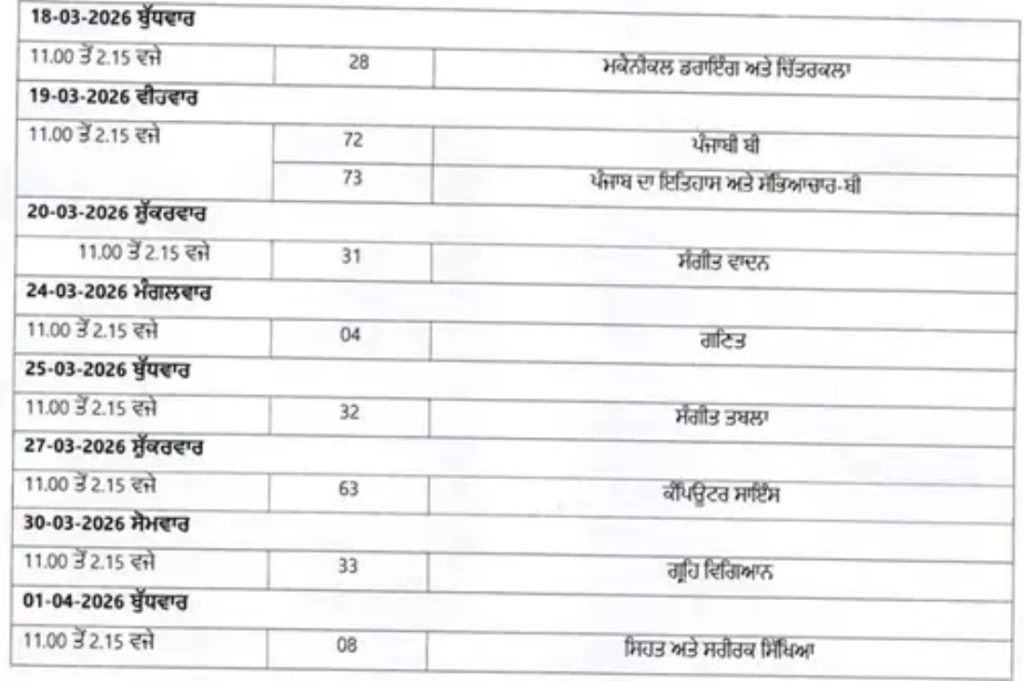 ਬੋਰਡ ਨੇ ਪ੍ਰੀਖਿਆਵਾਂ ਦਾ ਸਮਾਂ ਇਸ ਪ੍ਰਕਾਰ ਰੱਖਿਆ ਹੈ: