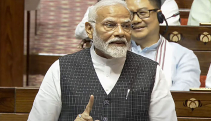 ਪ੍ਰਧਾਨ ਮੰਤਰੀ ਨਰਿੰਦਰ ਮੋਦੀ ਰਾਜ ਸਭਾ ਵਿੱਚ ਰਾਸ਼ਟਰਪਤੀ ਦੇ ਭਾਸ਼ਣ ‘ਤੇ ਧੰਨਵਾਦ ਪ੍ਰਸਤਾਵ ਦਾ ਜਵਾਬ ਦੇ ਰਹੇ ਸਨ। ਭਾਸ਼ਣ ਦੌਰਾਨ ਵਿਰੋਧੀ ਧਿਰ ਨੇ ਨਾਅਰੇਬਾਜ਼ੀ ਸ਼ੁਰੂ ਕਰ ਦਿੱਤੀ। ਵਿਰੋਧੀ ਧਿਰ ਦੇ ਆਗੂਆਂ ਨੇ ਮੰਗ ਕੀਤੀ ਕਿ ਰਾਹੁਲ ਗਾਂਧੀ ਨੂੰ ਬੋਲਣ ਦਿੱਤਾ ਜਾਵੇ, ਕਿਉਂਕਿ ਤਾਨਾਸ਼ਾਹੀ ਕੰਮ ਨਹੀਂ ਕਰੇਗੀ। ਪ੍ਰਧਾਨ ਮੰਤਰੀ ਨੇ ਜਵਾਬ ਵਿੱਚ ਕਿਹਾ ਕਿ ਖੜਗੇ ਜੀ ਦੀ ਉਮਰ ਨੂੰ ਦੇਖਦੇ ਹੋਏ, ਉਨ੍ਹਾਂ ਨੂੰ ਬੈਠ ਕੇ ਨਾਅਰੇਬਾਜ਼ੀ ਕਰਨ ਦੀ ਇਜਾਜ਼ਤ ਦਿੱਤੀ ਜਾਣੀ ਚਾਹੀਦੀ ਹੈ।