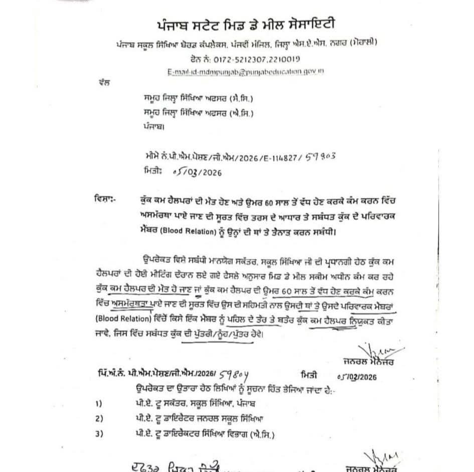 ਮਿਡ ਡੇ ਮੀਲ ਕੁੱਕ ਵਰਕਰਾਂ ਦੇ ਸੰਘਰਸ਼ ਨੂੰ ਬੂਰ ਪਿਆ, ਹੁਣ ਕੁੱਕ ਵਰਕਰਾਂ ਦੇ ਖੂਨੀ ਰਿਸ਼ਤੇ ਵਾਲੇ ਵਿਅਕਤੀਆਂ ਨੂੰ ਮਿਲੇਗੀ ਨੌਕਰੀ