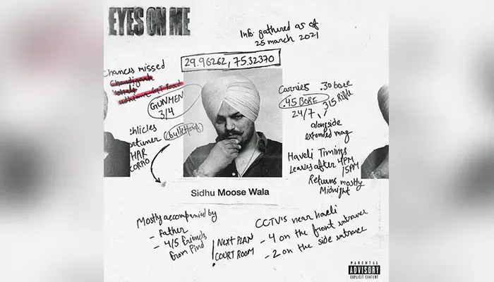 ਮਰਹੂਮ ਪੰਜਾਬੀ ਗਾਇਕ ਸ਼ੁਭਦੀਪ ਸਿੰਘ ਸਿੱਧੂ ਮੂਸੇਵਾਲਾ ਦਾ ਨਵਾਂ ਗੀਤ, “ਆਈਜ਼ ਔਨ ਮੀ”, ਜਲਦੀ ਹੀ ਰਿਲੀਜ਼ ਹੋਣ ਵਾਲਾ ਹੈ। ਇਸ ਗੀਤ ਦਾ ਪੋਸਟਰ ਸਿੱਧੂ ਮੂਸੇਵਾਲਾ ਦੇ ਸੋਸ਼ਲ ਮੀਡੀਆ ਅਕਾਊਂਟ ‘ਤੇ ਰਿਲੀਜ਼ ਕੀਤਾ ਗਿਆ ਹੈ। ਪੋਸਟਰ ਵਿੱਚ ਸਿੱਧੂ ਮੂਸੇਵਾਲਾ, ਉਸਦੇ ਸੁਰੱਖਿਆ ਕਰਮਚਾਰੀਆਂ, ਹਥਿਆਰਾਂ ਅਤੇ ਹੋਰ ਵੇਰਵਿਆਂ ‘ਤੇ ਹਮਲਿਆਂ ਦਾ ਵੇਰਵਾ ਦਿੱਤਾ ਗਿਆ ਹੈ। ਇੱਕ ਦਿਨ ਪਹਿਲਾਂ, ਸਿੱਧੂ ਮੂਸੇਵਾਲਾ ਦੇ ਇੰਸਟਾਗ੍ਰਾਮ ‘ਤੇ ਇੱਕ ਕਹਾਣੀ ਪੋਸਟ ਕੀਤੀ ਗਈ ਸੀ, ਜਿਸ ਵਿੱਚ ਇੱਕ ਨਵਾਂ ਗੀਤ ਜਲਦੀ ਆਉਣ ਦਾ ਐਲਾਨ ਕੀਤਾ ਗਿਆ ਸੀ, ਪਰ ਸਿਰਲੇਖ ਦਾ ਜ਼ਿਕਰ ਨਹੀਂ ਕੀਤਾ ਗਿਆ ਸੀ। ਜਿਸ ਦਾ ਕਿ ਅੱਜ ਸਿਰਲੇਖ ਜਾਰੀ ਕੀਤਾ ਗਿਆ ਹੈ।