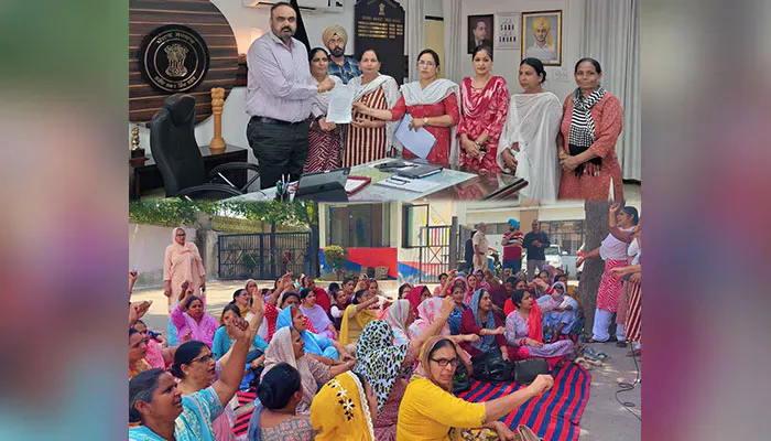 ਜ਼ਿਲ੍ਹਾ ਜਨਰਲ ਸਕੱਤਰ ਲਖਵਿੰਦਰ ਕੌਰ ਨੇ ਦਸਿਆ ਅਸੀ ਜਿਲ੍ਹਾ ਪੱਧਰ ਉੱਤੇ ਅੱਜ ਡੀ ਸੀ ਸਾਹਿਬ ਜੀ ਨੂੰ ਅਪੀਲ ਕਰਨਾ ਚਾਹੁੰਦੇ ਹਾਂ ਕਿ ਸਰਕਾਰ ਵੱਲੋਂ ਆਏ ਫ਼ੋਨ ਜੋ ਪਹਿਲਾ ਹੀ ਲੇਟ ਹਨ ਉਹ ਦਿੱਤੇ ਜਾਣ । ਤੇ ਉਨ੍ਹਾਂ ਦੇ ਧਿਆਨ ਵਿੱਚ ਦਸਦੇ ਹਾ ਕਿ ਸੈਨੇਟਰੀ ਪੈਡ ਲਈ ਅਲੱਗ ਤੋਂ ‘ਐਮ ਸੇਵਾ ਐਪ’ ਡਾਊਨਲੋਡ ਕਰਕੇ ਚਲਾਉਣੀ ਇਸ ਤੋਂ ਇਲਾਵਾ ਪਹਿਲੇ ਅਤੇ ਦੂਜੇ ਬੱਚੇ ਵਾਲੀਆਂ ਔਰਤਾਂ ਲਈ ਚੱਲ ਰਹੀ ਮਾਤਰਭਵੰਦਨਾ ਯੋਜਨਾ ਦੇ ਫਾਰਮ ਭਰਨ ਲਈ ‘ਪੀਐਮਬੀ ਬਾਈ ‘ ਦੀ ਐਪ ਡਾਊਨਲੋਡ ਕਰਕੇ ਉਸ ਉੱਤੇ ਕੰਮ ਕਰਨਾ ਜੋ ਕਿ ਨਿੱਜੀ ਫੋਨਾਂ ਉੱਪਰ ਬਹੁਤ ਵੱਡਾ ਲੋਡ ਹੈ ਵਰਕਰਜ਼ ਐਨੇ ਕੰਮ ਕਰ ਰਹੀਆ ਹਨ ਪਰ ਜੇਕਰ ਹੋਰ ਇਸ ਤਰਾਂ ਦੇ ਕੰਮ ਸੌਂਪੇ ਗਏ ਤਾਂ ਜੋ ਫੋਨ ਚੱਲ ਰਹੇ ਹਨ ਉਹ ਵੀ ਬੰਦ ਹੋ ਜਾਣਗੇ ਅਤੇ ਨਾ ਹੀ ਆਂਗਣਵਾੜੀ ਵਰਕਰ ਕੋਲ ਹੋਰ ਫੋਨ ਖਰੀਦਣ ਦੀ ਸਮਰੱਥਾ ਹੈ। ਜੇਕਰ ਮਾਵਾਂ ਧੀਆਂ ਸਤਿਕਾਰਯੋਗ ਯੋਜਨਾ ਦਾ ਸਰਕਾਰ ਕੰਮ ਕਰਵਾਉਣਾ ਚਾਹੁੰਦੀ ਹੈ ਤਾਂ ਆਂਗਣਵਾੜੀ ਵਰਕਰਾਂ ਦੇ ਖਰੀਦੇ ਹੋਏ ਫੋਨ ਉਹਨਾਂ ਨੂੰ ਡੱਬਾ ਬੰਦ ਹੀ ਦਿੱਤੇ ਜਾਣ ਤਾਂ ਕਿ ਉਹਨਾਂ ਨੂੰ ਆਂਗਣਵਾੜੀ ਵਰਕਰ ਸੁਚਾਰੂ ਢੰਗ ਨਾਲ ਚਲਾਉਣ ਅਤੇ ਆਪਣਾ ਕੰਮ ਕਰ ਸਕਣ।