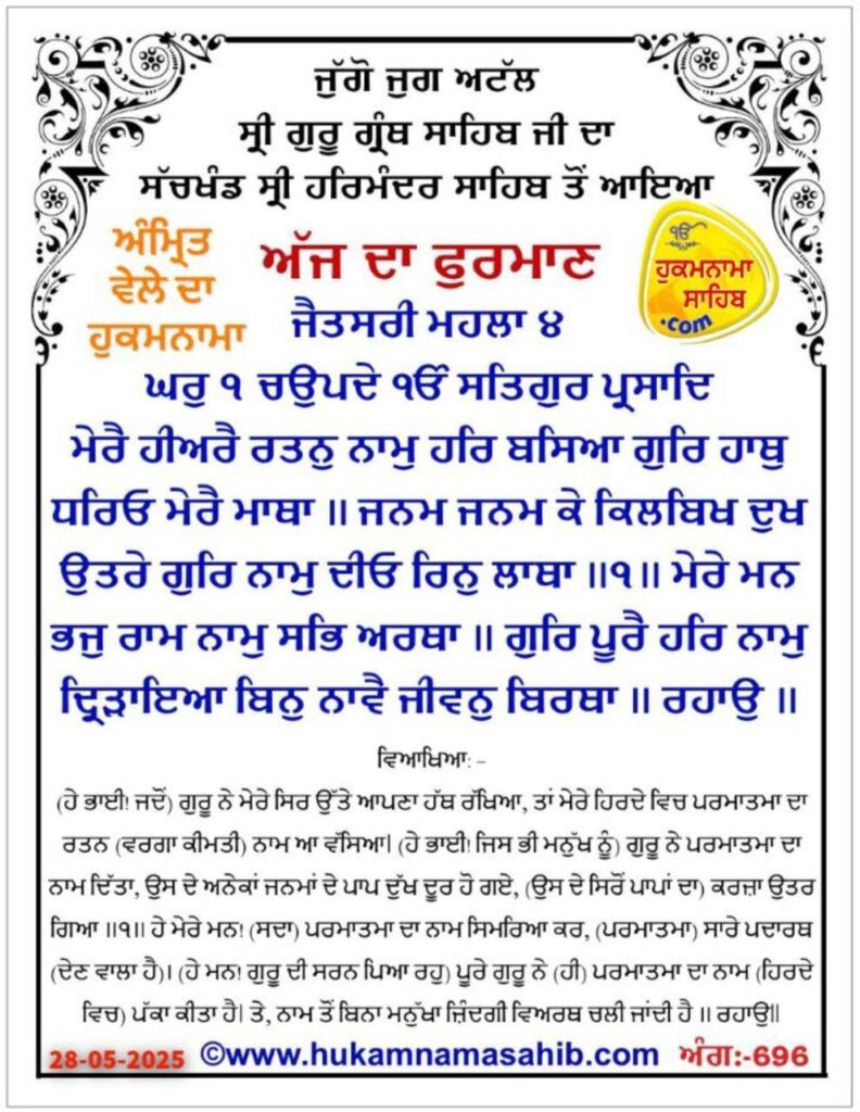 ਸੱਚਖੰਡ ਸ੍ਰੀ ਹਰਿਮੰਦਰ ਸਾਹਿਬ, ਸ੍ਰੀ ਅੰਮ੍ਰਿਤਸਰ, 28-05-2025