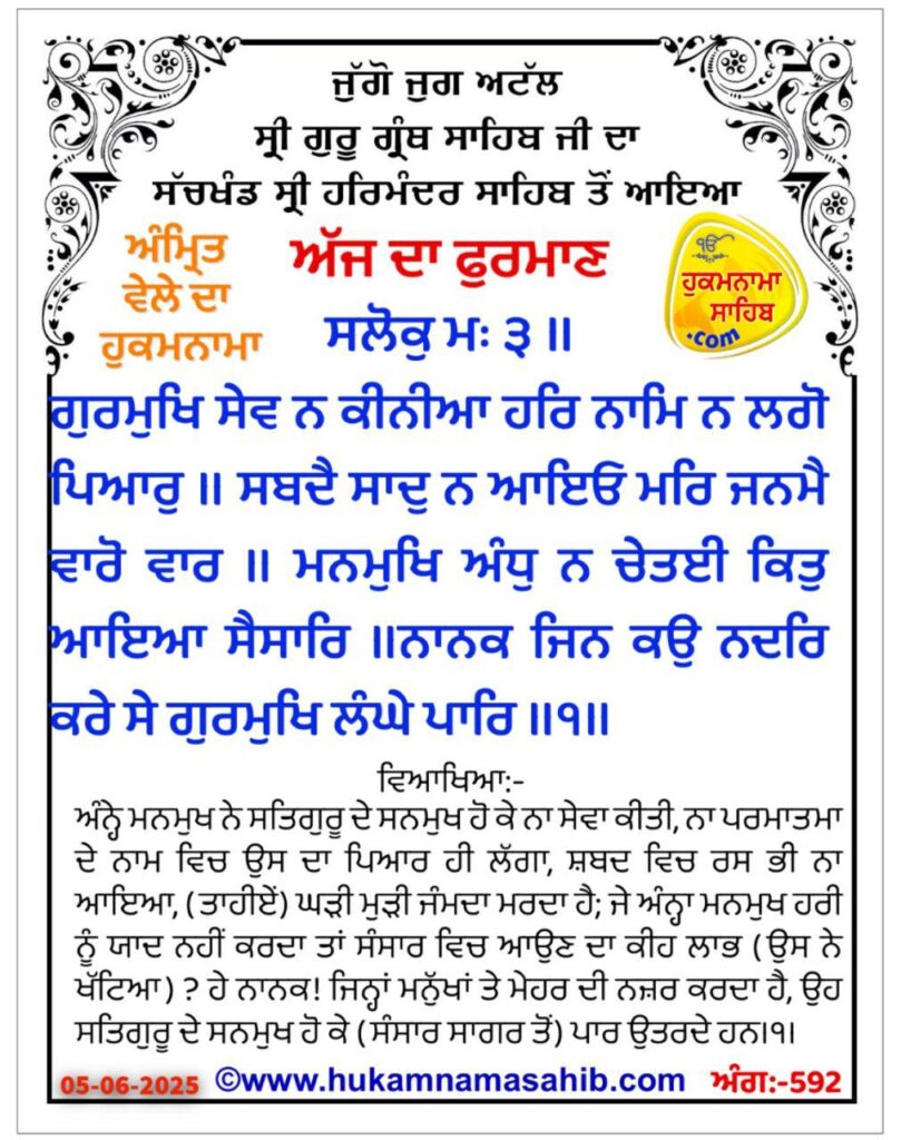 ਸੱਚਖੰਡ ਸ੍ਰੀ ਹਰਿਮੰਦਰ ਸਾਹਿਬ, ਸ੍ਰੀ ਅੰਮ੍ਰਿਤਸਰ, 05-06-2025