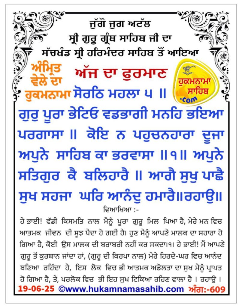 ਸੱਚਖੰਡ ਸ੍ਰੀ ਹਰਿਮੰਦਰ ਸਾਹਿਬ, ਸ੍ਰੀ ਅੰਮ੍ਰਿਤਸਰ, 19-06-2025
