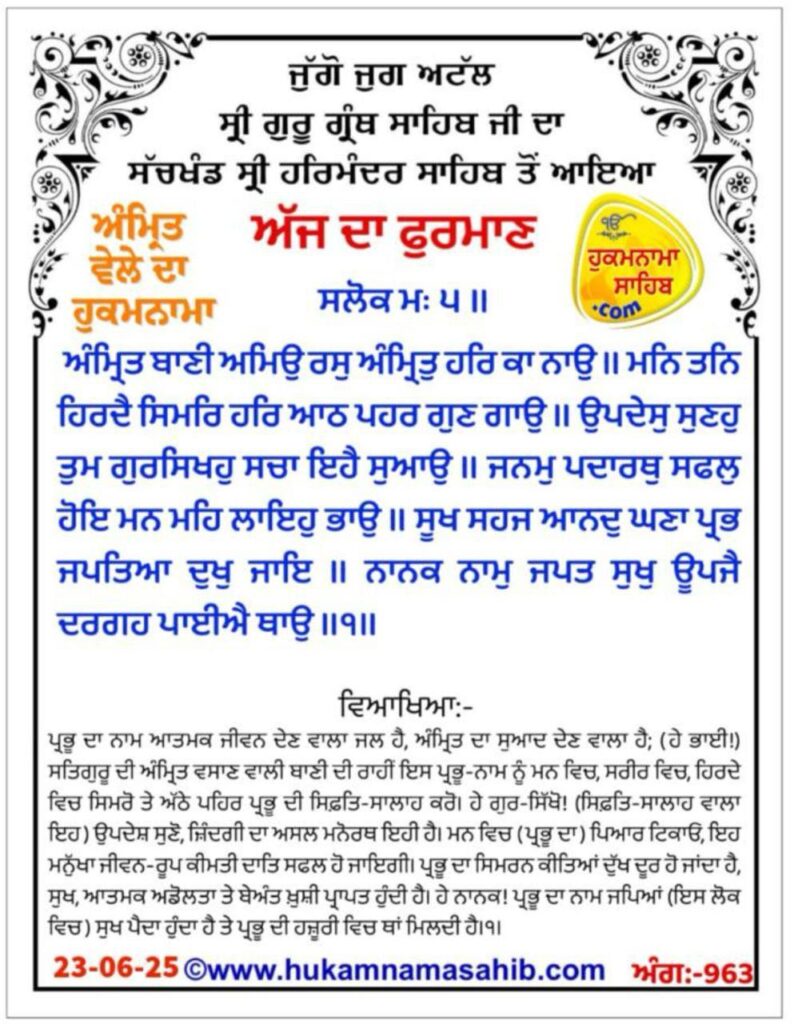 ਸੱਚਖੰਡ ਸ੍ਰੀ ਹਰਿਮੰਦਰ ਸਾਹਿਬ, ਸ੍ਰੀ ਅੰਮ੍ਰਿਤਸਰ, 23-06-2025