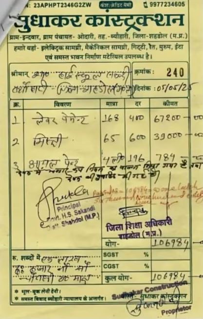 ਹੁਣ ਇਸ ਕਾਰਨਾਮੇ ਦਾ ਬਿੱਲ ਸੋਸ਼ਲ ਮੀਡੀਆ ਉਤੇ ਵਾਇਰਲ ਹੋ ਰਿਹਾ ਹੈ, ਜਿਸ ਨੂੰ ਦੇਖ ਕੇ ਹਰ ਕੋਈ ਹੈਰਾਨ ਹੋ ਰਿਹਾ ਹੈ। 4 ਲੀਟਰ ਨਾਲ ਕੰਧ ਰੰਗ ਕਰਨ ਲਈ 1 ਲੱਖ 6 ਹਜ਼ਾਰ ਰੁਪਏ ਦਾ ਬਿੱਲ ਬਣਾ ਦਿੱਤਾ। ਵੱਡੀ ਗੱਲ ਇਹ ਹੈ ਕਿ ਸਕੂਲ ਸਿੱਖਿਆ ਵਿਭਾਗ ਦੇ ਜ਼ਿਲ੍ਹਾ ਸਿੱਖਿਆ ਅਧਿਕਾਰੀ ਨੇ ਇਸ ਬਿੱਲ ਨੂੰ ਬਿਨਾਂ ਕੁਝ ਦੇਖੇ ਹੀ ਮਨਜ਼ੂਰੀ ਦੇ ਦਿੱਤੀ।