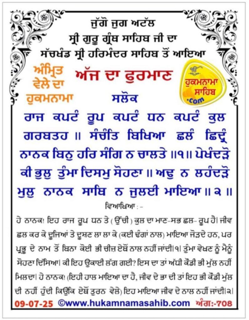 ਸੱਚਖੰਡ ਸ੍ਰੀ ਹਰਿਮੰਦਰ ਸਾਹਿਬ, ਸ੍ਰੀ ਅੰਮ੍ਰਿਤਸਰ, 09-07-2025
