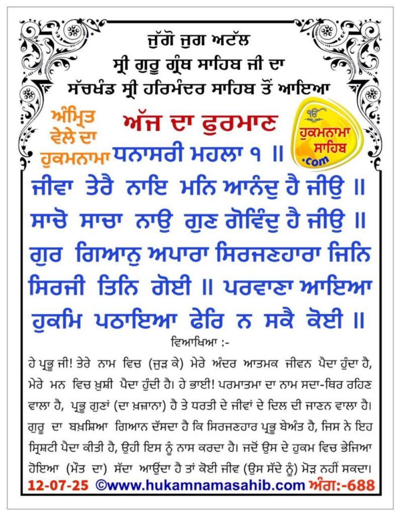 ਸੱਚਖੰਡ ਸ੍ਰੀ ਹਰਿਮੰਦਰ ਸਾਹਿਬ, ਸ੍ਰੀ ਅੰਮ੍ਰਿਤਸਰ, 12-07-2025