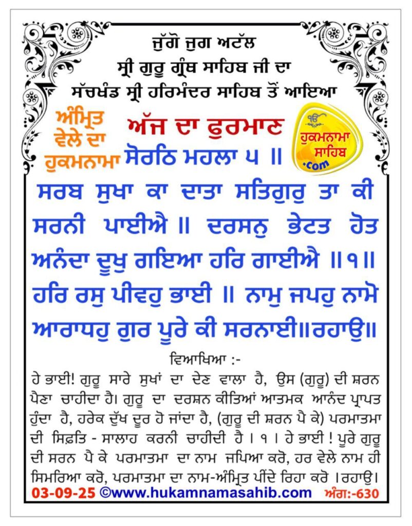 ਸੱਚਖੰਡ ਸ੍ਰੀ ਹਰਿਮੰਦਰ ਸਾਹਿਬ, ਸ੍ਰੀ ਅੰਮ੍ਰਿਤਸਰ , 03-09-2025
