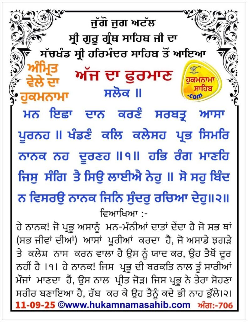 ਸੱਚਖੰਡ ਸ੍ਰੀ ਹਰਿਮੰਦਰ ਸਾਹਿਬ, ਸ੍ਰੀ ਅੰਮ੍ਰਿਤਸਰ, 11-09-2025