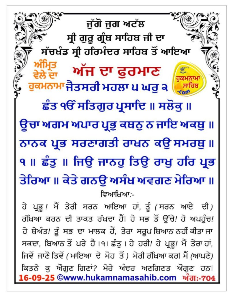 ਸੱਚਖੰਡ ਸ੍ਰੀ ਹਰਿਮੰਦਰ ਸਾਹਿਬ, ਸ੍ਰੀ ਅੰਮ੍ਰਿਤਸਰ, 16-09-2025