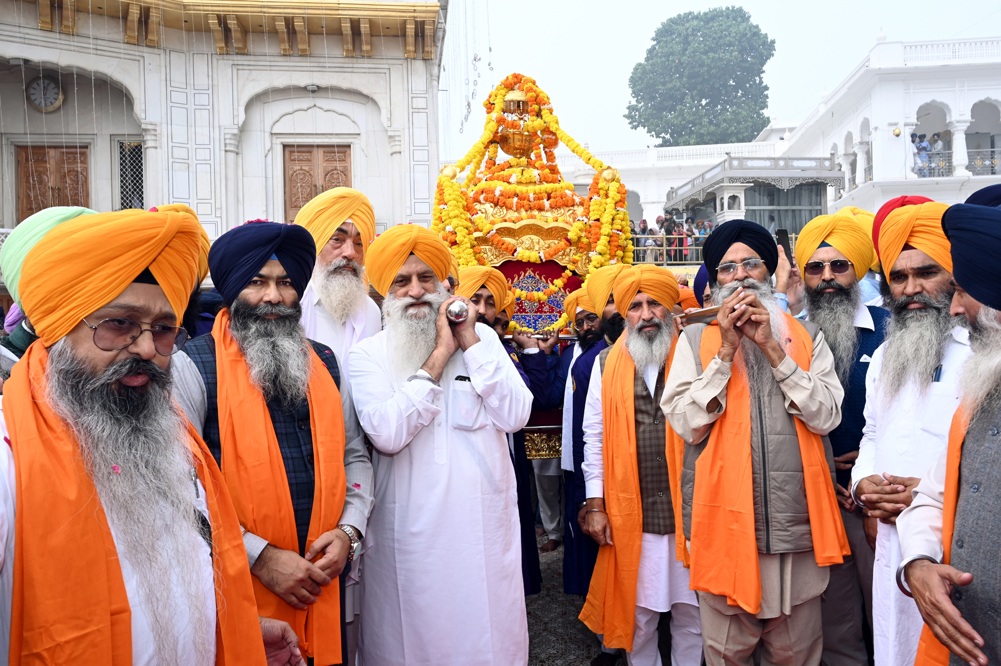 ਪਹਿਲੇ ਪਾਤਸ਼ਾਹ ਸ੍ਰੀ ਗੁਰੂ ਨਾਨਕ ਦੇਵ ਜੀ ਦੇ ਪ੍ਰਕਾਸ਼ ਗੁਰਪੁਰਬ ਸਬੰਧੀ ਸ਼੍ਰੋਮਣੀ ਗੁਰਦੁਆਰਾ ਪ੍ਰਬੰਧਕ ਕਮੇਟੀ ਵੱਲੋਂ ਧਾਰਮਿਕ ਸਭਾ-ਸੁਸਾਇਟੀਆਂ ਅਤੇ ਸੰਗਤਾਂ ਦੇ ਸਹਿਯੋਗ ਨਾਲ ਸ੍ਰੀ ਅਕਾਲ ਤਖ਼ਤ ਸਾਹਿਬ ਤੋਂ ਨਗਰ ਕੀਰਤਨ ਸਜਾਇਆ ਗਿਆ। ਸ੍ਰੀ ਗੁਰੂ ਗ੍ਰੰਥ ਸਾਹਿਬ ਜੀ ਦੀ ਛਤਰ ਛਾਇਆ ਅਤੇ ਪੰਜ ਪਿਆਰਿਆਂ ਦੀ ਅਗਵਾਈ ਵਿਚ ਸਜਾਏ ਗਏ ਨਗਰ ਕੀਰਤਨ ਦੀ ਆਰੰਭਤਾ ਮੌਕੇ ਸੱਚਖੰਡ ਸ੍ਰੀ ਹਰਿਮੰਦਰ ਸਾਹਿਬ ਦੇ ਮੁੱਖ ਗ੍ਰੰਥੀ ਤੇ ਸ੍ਰੀ ਅਕਾਲ ਤਖ਼ਤ ਸਾਹਿਬ ਦੇ ਜਥੇਦਾਰ ਸਿੰਘ ਸਾਹਿਬ ਗਿਆਨੀ ਰਘਬੀਰ ਸਿੰਘ, ਸ਼੍ਰੋਮਣੀ ਕਮੇਟੀ ਪ੍ਰਧਾਨ ਐਡਵੋਕੇਟ ਹਰਜਿੰਦਰ ਸਿੰਘ ਧਾਮੀ ਸਮੇਤ ਪ੍ਰਮੁੱਖ ਸ਼ਖ਼ਸੀਅਤਾਂ ਨੇ ਸ਼ਮੂਲੀਅਤ ਕੀਤੀ। ਅਰਦਾਸ ਉਪਰੰਤ ਸ੍ਰੀ ਗੁਰੂ ਗ੍ਰੰਥ ਸਾਹਿਬ ਜੀ ਦਾ ਪਾਵਨ ਸਰੂਪ ਸਿੰਘ ਸਾਹਿਬ ਜਥੇਦਾਰ ਗਿਆਨੀ ਰਘਬੀਰ ਸਿੰਘ ਨੇ ਸੁਨਹਿਰੀ ਪਾਲਕੀ ਸਾਹਿਬ ਵਿਚ ਸੁਸ਼ੋਭਿਤ ਕੀਤਾ। ਨਗਰ ਕੀਰਤਨ ਦੌਰਾਨ ਵੱਡੀ ਗਿਣਤੀ ਵਿਚ ਸੰਗਤਾਂ ਨੇ ਸ਼ਮੂਲੀਅਤ ਕਰਦਿਆਂ ਸ਼ਰਧਾ ਦਾ ਪ੍ਰਗਟਾਵਾ ਕੀਤਾ ਅਤੇ ਸਕੂਲੀ ਬੱਚਿਆਂ, ਬੈਂਡ ਪਾਰਟੀਆਂ, ਸ਼ਬਦ ਚੌਂਕੀ ਜਥੇ ਤੇ ਗਤਕਾ ਪਾਰਟੀਆਂ ਨੇ ਪੂਰੇ ਉਤਸ਼ਾਹ ਨਾਲ ਨਗਰ ਕੀਰਤਨ ਵਿਚ ਸ਼ਮੂਲੀਅਤ ਕੀਤੀ। ਨਗਰ ਕੀਰਤਨ ਦੇ ਰਸਤੇ ਵਿਚ ਸੰਗਤਾਂ ਵੱਲੋਂ ਜਲ ਪਾਣੀ ਅਤੇ ਲੰਗਰਾਂ ਰਾਹੀਂ ਸੇਵਾ ਕੀਤੀ ਗਈ।