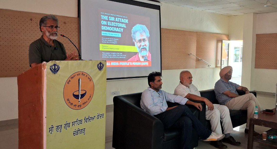 दीपांकर ने SIR के खिलाफ पूरे देश को लड़ाई लड़ने का दिया आह्वान चंडीगढ़, 7 सितंबर, देश क्लिक ब्यूरो ::ऑल इंडिया पीपल्स फ़ोरम (AIPF) की ओर से कॉमरेड स्वप्न मुखर्जी को समर्पित भाषण शृंखला के तहत “बिहार में कराए जा रहे स्पेशल इंटेंसिव रिविज़न (SIR) के ज़रिए चुनाव प्रक्रिया पर हमला” विषय पर एक सेमिनार […]